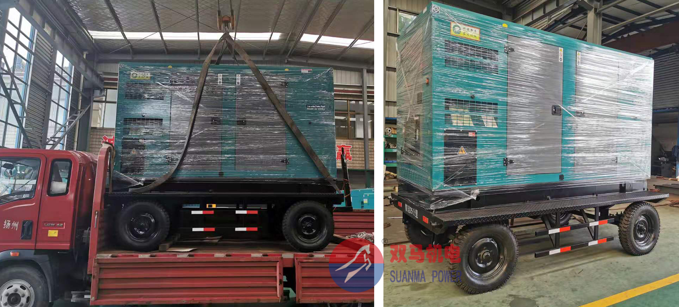 上海某避難產所訂購300KW移動靜音柴油發電機組1臺,柴油機采用上柴股份SC15G500D2配套江蘇雙馬無刷全銅發電機SMI-300-4,控制系統采用眾智HGM6110N,組成的上柴柴油發電機組,同時配套江蘇雙馬自主研發生產的四輪移動靜音箱,配備超大的底座燃油箱,有效的建設噪聲污染,同時方便場所移動使用,現生產完成,專車發往上海。
